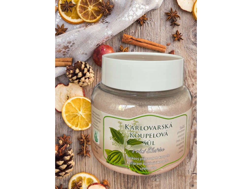 Koupelová sůl s jemnou vůní skořice navozuje klid, uvolnění a příjemnou atmosféru. Minerální složky inspirované karlovarskými prameny přispívají k regeneraci pokožky a napomáhají uvolnění svalstva.